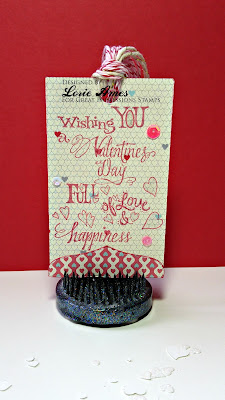 For my tag I've used H280 Love & Happiness stamped on some pretty patterned paper, I added some visual interest at the bottom with a complimentary paper and a few sequins, some Illuminate Smooch, and twine really finishes this tag off well! Sometimes clean and simple is what you need and this tag fits that bill.